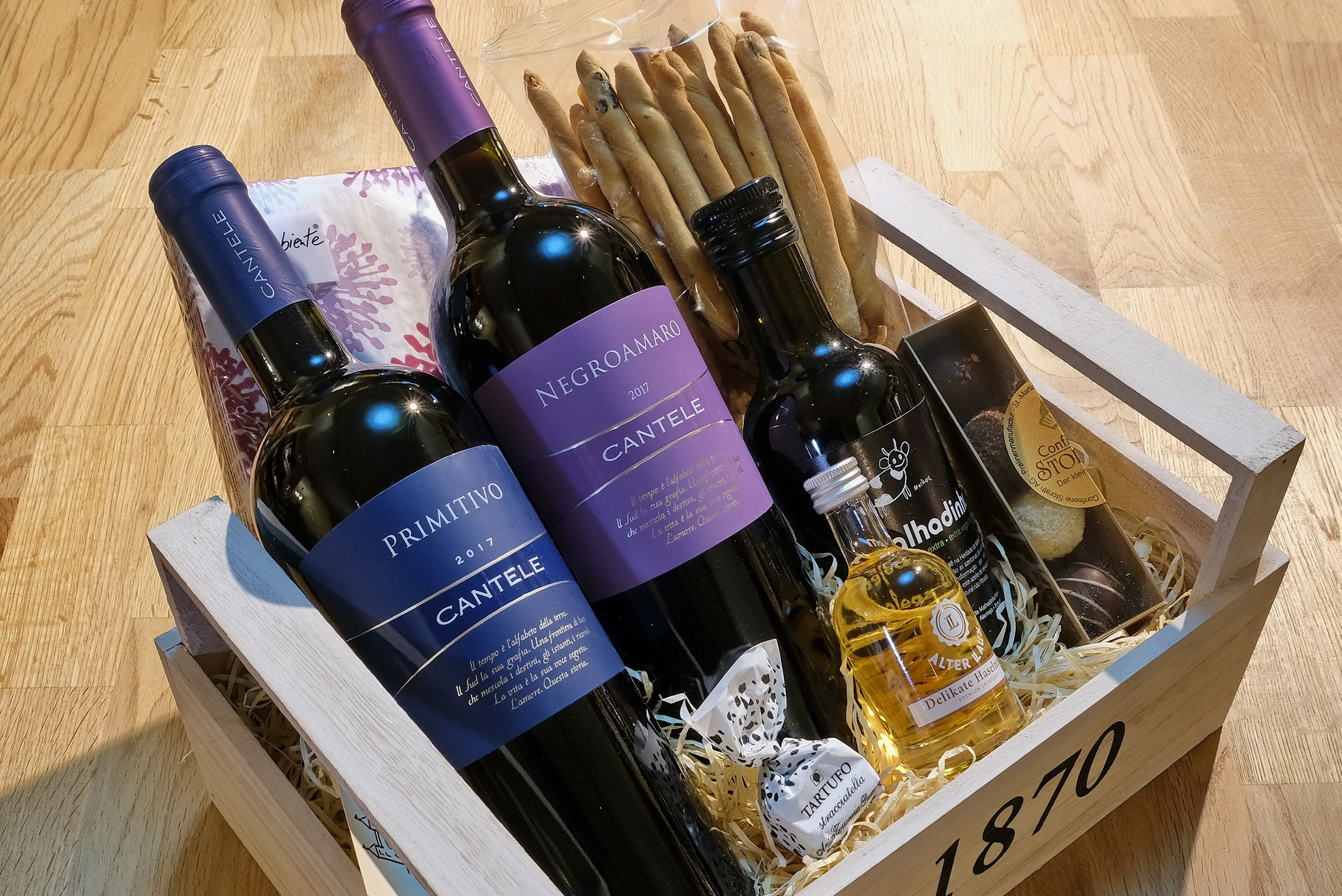 Sie suchen ein originelles Geschenk oder Präsent für einen privaten oder beruflichen Anlass? Bei uns erhalten Sie individuelle Wein-Geschenkkörbe für jeden Anlass nach Ihren Wünschen arrangiert. Fragen Sie uns einfach danach.